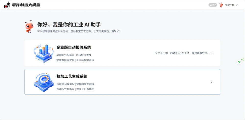 技术赋能,降本增效再升级!蚂蚁工场自主研发的3D智选软件,凭借批量替换、离线标准件模型库选型等核心优势,持续为设计师节省设计时间;AI智能报价系统,全自动化处理零件加工数据,秒级响应报价需求,将传统十人一天的工作效率压缩至一刻钟,以数智化实力助力企业提效降本,筑牢核心竞争力。